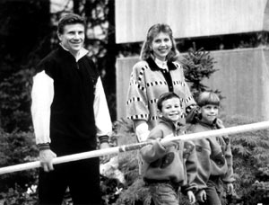 Это во-первых, во-вторых, у нас тогда не было достаточного количества авиарейсов, чтобы летать на соревнования. После каждого старта нужно было возвращаться домой, через три-четыре дня опять вылетать. А как важен тип самолета - мы ведь летаем с шестами, и не вся авиация берет их на борт.  1989 год. Сергей Бубка с женой Лилей и сыновьями на отдыхе в Италии | В общем, нужна была точка опоры в Европе, куда бы я возвращался после стартов, где были бы нормальные условия для тренировок, стадионы и залы... Плюс принц Альберт любит спорт, у меня с ним замечательные отношения. Поэтому моей штаб-квартирой, как бы вторым домом стал Монте-Карло.