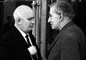 | Встреча правительства с деятелями литературы и искусства в Кремле (справа: Никита Хрущев и поэт Александр Твардовский), Москва, март 1963 года |