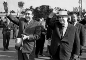 | Леонид Брежнев и Никита Хрущев с китайским государственным политическим деятелем Лю Шаоци на приеме в Кремле в начале 60-х. В октябре 1968-го 12-й пленум Центрального комитета Коммунистической партии Китая постановил исключить Лю Шаоци из рядов КПК, сняв его «со всех по стов внутри и вне партии» как одного из главных противников политической линии Мао Цзэдуна |