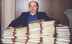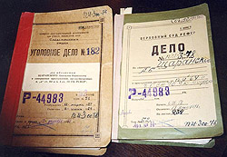 ...Выхожу из тюрьмы (а зима, снегу навалило изрядно) и вижу у крыльца осаду: телекамеры, журналисты... Я снова, почувствовав себя, как в прежние годы, споуксменом, залез на какой-то сугроб и стал давать интервью. Первый же вопрос был таким: «Зачем вы себя мучаете? Что это за мазохизм?». Я улыбнулся: «Вы только подумайте, 20 лет назад в этой самой Лефортовской тюрьме руководители КГБ — могущественнейшего органа самой сильной диктатуры в мире! — доказывали арестанту Щаранскому, что пришел конец и мне, и нашему движению за права человека, что лидеры всего мира боятся упоминать наши имена, что наша борьба закончена. Прошло 20 лет. КГБ нет, Советского Союза тоже, коммунистический блок исчез. Миллионы евреев уехали отсюда в Израиль, 250 миллионов стали более свободными людьми... Дело Щаранского насчитывает 51 том. КГБ предоставил Натану Борисовичу возможность подержаться за эти документы и даже с ними сфотографироваться, а вот забрать их с собой в Израиль ему не разрешили |