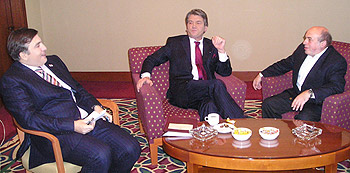 Мне, скажем так, повезло, потому что выпавшие испытания позволили оценить те огромные силы, которые есть внутри каждого из нас, — надо только научиться ими пользоваться. Михаил Саакашвили, Виктор Ющенко и Натан Щаранский |